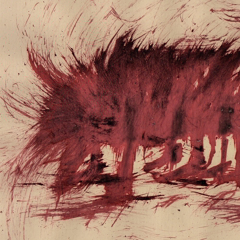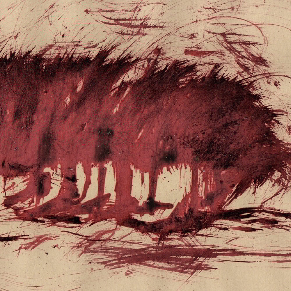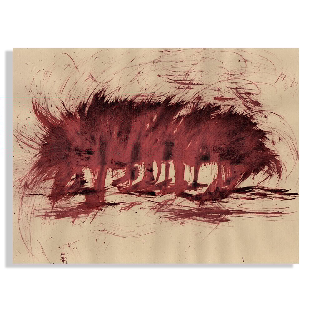 Red ink and Musou black paint on kraft paper.