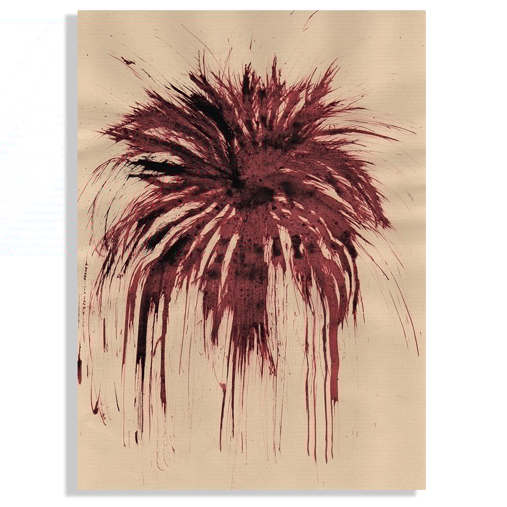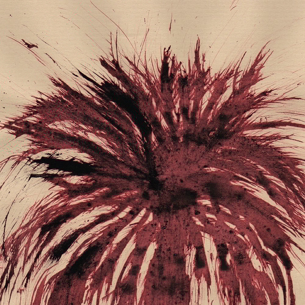Red ink and Musou black paint on kraft paper.